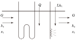 다음과 같이 단열된 덕트 내에 공기가 통하고 이것에 열량 Q (kcal/h)와 수분 L (kg/h)을 가하여 열평형이 이루어졌을 때, 공기에 가해진 열량은? (단, 공기의 유량은 G (kg/h), 가열코일 입ㆍ출구의 엔탈피, 절대습도를 각각 h1 , h2 (kcal/kg), x1, x2 (kg/kg)로 하고, 수분의 엔탈피를 hL (kcal/kg)로 한다.)