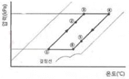 다음 그림은 단효용 흡수식 냉동기에서 일어나는 과정을 나타낸 것이다. 각 과정에 대한 설명으로 틀린 것은?