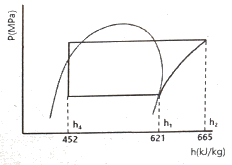 다음의 p-h선도상에서 냉동능력이 1냉동톤인 소형 냉장고의 실제 소요동력(kW)은? (단, 1냉동톤은 3.8kW이며, 압축효율은 0.75, 기계효율은 0.9이다.)