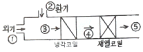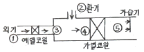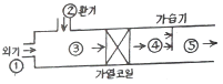 아래 습공기 선도에 나타낸 과정과 일치하는 장치도는?