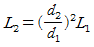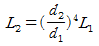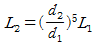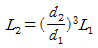 동일한 덕트 장치에서 송풍기의 날개의 직경이 d1, 전동기 동력이 L1인 송풍기를 직경 d2로 교환했을 때 동력의 변화로 옳은 것은? (단, 회전수는 일정하다.)