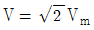 정현파 교류의 실효값(V)과 최대값(Vm)의 관계식으로 옳은 것은?