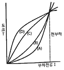 다음은 직류전동기의 토크특성을 나타내는 그래프이다. (A), (B), (C), (D)에 알맞은 것은?