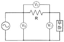 다음과 같은 회로에 전압계 3대와 저항 10Ω을 설치하여 V1=80V, V2=20V, V3=100V 의 실효치 전압을 계측하였다. 이 때 순저항 부하에서 소모하는 유효전력은 몇 W 인가?