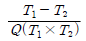 온도가 T1인 고열원으로부터 온도가 T2인 저열원으로 열전도, 대류, 복사 등에 의해 Q 만큼 열전달이 이루어졌을 때 전체 엔트로피 변화량을 나타내는 식은?