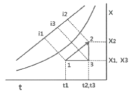 다음 그림에서 상태 ①인 공기를 ②로 변화시켰을 때의 현열비를 바르게 나타낸 것은?