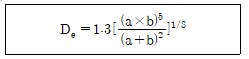 장방형 덕트(장변 a, 단변 b)를 원형덕트로 바꿀 때 사용하는 계산식은 아래와 같다. 이 식으로 환산된 장방형 덕트와 원형덕트의 관계는?