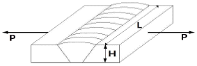 다음 그림과 같이 맞대기 용접에서 강판의 두께20mm, 인장하중 5000N, 용접부의 허용인장응력을 50N/mm2로 할 때 용접길이는 몇 mm인가?