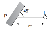 그림과 같이 간판을 비추는 광원이 있다. 간판면상 P점의 조도를 200[lx]로 하려면 광원의 광도[cd]는?
