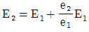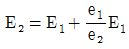 단상 승압기 1대를 사용하여 승압할 경우 승압전의 전압을 E1이라 하면, 승압 후의 전압 E2는 어떻게 되는가? (단, 승압기의 변압비는 부하측전압 전원측전압