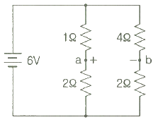 다음과 같은 회로에서 a, b 양단의 전압은 몇 V 인가?