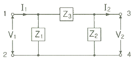 그림에서 4단자 회로 정수 A, B, C, D 중 출력 단자 3, 4가 개방되었을 때의