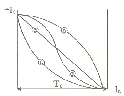 다음은 직류 발전기의 정류곡선이다. 이 중에서 정류 말기에 정류의 상태가 좋지 않은 것은?