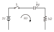 그림과 같은 회로에서 t=0에서 스위치를 닫으면 전류 i(t)[A]는? (단, 콘덴서의 초기전압은 0[V]이다.)