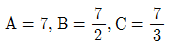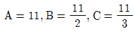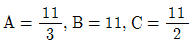다음과 같은 Y결선 회로와 등가인 △결선 회로의 A, B, C 값은 몇 Ω 인가?