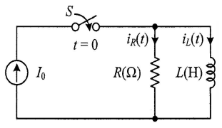 RL 병렬회로에서 t=0일 때 스위치 S를 닫는 경우 R(Ω)에 흐르는 전류 iR(t)(A)는?