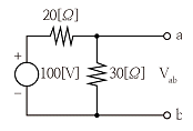 회로의 양 단자에서 테브난의 정리에 의한 등가회로로 변환할 경우 Vab 전압과 테브난 등가저항은?