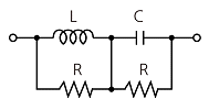인덕턴스 L[H] 및 커패시턴스 C[F]를 직렬로 연결한 임피던스가 있다. 정저항 회로를 만들기 위하여 그림과 같이 L 및 C의 각각에 서로 같은 저항 R[Ω]을 병렬로 연결할 때 R[Ω]은 얼마인가? (단, L=4mH, c=0.1㎌이다.)