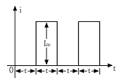 다음과 같은 파형의 맥동전류를 열선형 계기로 측정한 결과 10[A]이었다. 이를 가동 코일형 계기로 측정할 때 전류의 값[A]은?