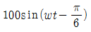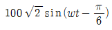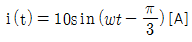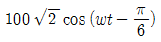 로 표시되는 전류 파형보다 위상이 30˚ 앞서고, 최대치가 100[V]인 전압파형을 식으로 나타내면?