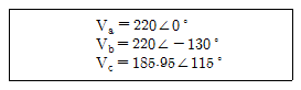 상순이 a-b-c인 3상 회로의 각 상전압이 보기와 같을 때 역상분 전압은 약 몇 [V]인가? (단, 보기 전압의 단위는 [V]이다.)