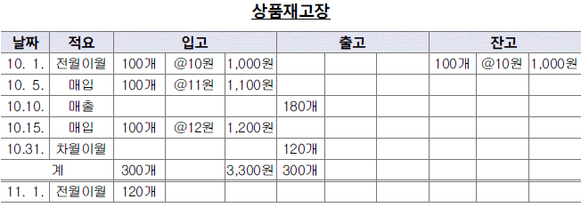다음의 상품재고장을 선입선출법으로 기록했을 경우 옳지 않은 것은?