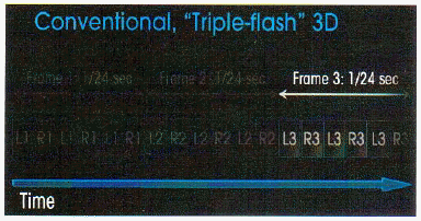 3D 디지털 영사기의 Triple Flash에 대한 그림이다. 설명 중 옳지 않은 것은?