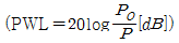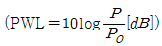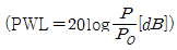 전력레벨(PWL:Power Level)을 바르게 표현한 것은? (단, P는 단위시간 동안 방사된 음향 에너지, PO는 인간의 가청한계인 10-12W를 기준으로 하다.