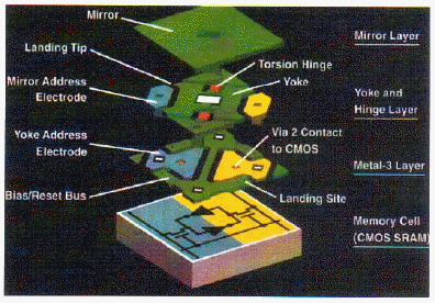 DLP는 DMD라는 디바이스로 구성되어 DMD는 그림과 같이 4단 구조를 가진다. 4단 구조에서 ±10도 기울이도록 되어 있으며 동작 속도는 15μs로 초고속인 지지층은 어디인가?