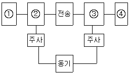 다음 그림은 팩시밀리(Facsimile)의 화상통신 계통도이다. 각 번호에 들어갈 내용을 번호순으로 올바르게 나열한 것은?