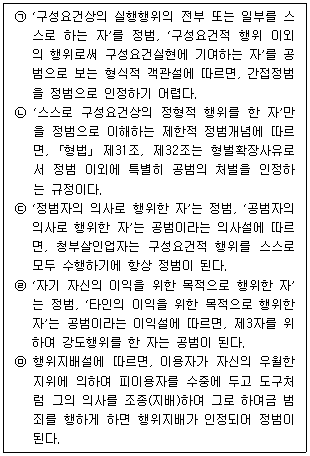 ㉠부터 ㉤까지는 정범과 공범의 구별에 관한 학설에 대한 설명이다. 옳고 그름의 표시(O, X)가 바르게 된 것은?