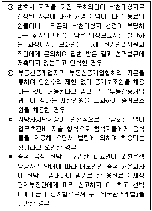 다음 중 법률의 착오에 정당한 이유가 있는 것을 모두 고른 것은?(다툼이 있는 경우 판례에 의함)