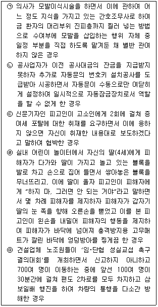 정당행위에 해당하여 위법성이 조각되는 것만을 모두 고른 것은? (다툼이 있는 경우 판례에 의함)