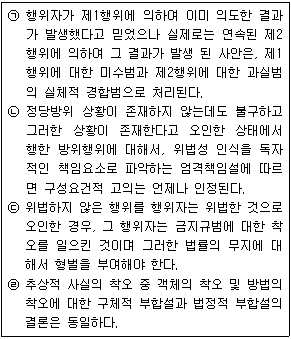 「형법」 상 착오의 처리에 대한 다음 설명 중 적절하지 않은 것만을 고른 것은 모두 몇 개인가? (다툼이 있는 경우 판례에 의함)