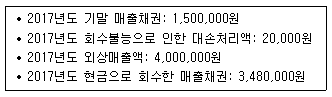 다음은 (주)한공의 2017년도 매출채권 및 대손충당금 관련 자료이다. 2017년도 기초 매출채권 금액은 얼마인가?