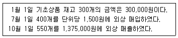 다음은 (주)한공의 2017년 상품거래 내역이다. 매출원가를 계산하면 얼마인가? (단, 선입선출법을 적용한다)