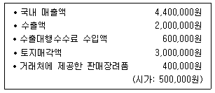 신발제조업을 영위하는 (주)한공의 2017년 2기 부가가치세 예정신고기간(2017.7.1. ~ 2017.9.30.)의 공급가액에 대한 자료이다. 매출세액은 얼마인가?