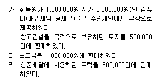 다음은 컴퓨터 판매업을 영위하는 (주)한공의 2016년 제2기 예정신고기간의 거래내역이다. 부가가치세 매출세액은 얼마인가? 단, 아래의 금액에는 부가가치세가 포함되어 있지 않다.