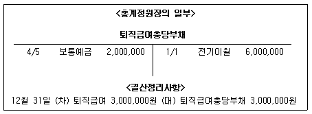 다음 자료에 의해 계산한 결산 시 퇴직금추계액은 얼마인가?
