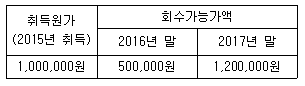 (주)한공은 2016년 12월 31일 유형자산인 토지의 손상징후가 있다고 판단하여 손상차손을 계상하였다. 토지 관련 자료가 다음과 같을 때 2017년 말 회계처리로 옳은 것은? (단, 원가모형을 적용한다)