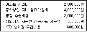 다음은 (주)한공에 근무하는 김한공씨의 신용카드 사용내역이다. 신용카드 등 소득공제 대상 사용금액은 얼마인가?
