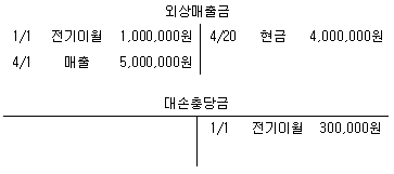 (주)한공은 2017년 5월 1일에 전기 대손처리한 외상매출금 1,000,000원 중 500,000원을 현금으로 회수하였다. 회수 전 외상매출금과 대손충당금 자료는 다음과 같다.
