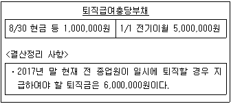 다음은 (주)한공의 퇴직급여충당부채계정과 결산정리 사항이다. 2017년 재무상태표에 계상될 퇴 직급여충당부채와 손익계산서에 계상될 퇴직급여는 얼마인가? (순서대로 퇴직급여충당부채, 퇴직급여)