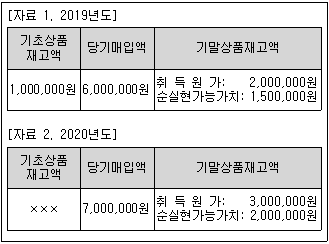 다음은 (주)한공의 상품 관련 자료이다. 이를 통해 2020년도 매출원가를 계산하면? (재고자산 평가손실은 정상적인 것이다.)