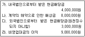 다음은 거주자 김한공 씨의 2020년 귀속 소득의 내역이다. 김한공 씨의 종합소득금액에 합산될 종합과세대상 금융소득은 얼마인가? 별도의 언급이 없는 한 적법하게 원천징수 되었다.