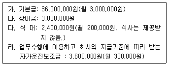 다음은 거주자 김한공 씨(영업부장)가 (주)한공으로부터 수령한 소득자료이다. 이를 이용하여 2019년 김한공 씨의 총급여액을 계산하면 얼마인가?