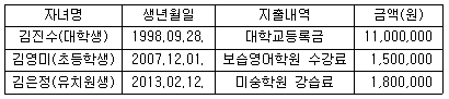 다음은 근로소득자인 김한공 씨가 2018년에 지출한 자녀교육비내역이다. 연말정산시 교육비세액공제 대상금액은 얼마인가? (단, 자녀의 소득은 없는 것으로 가정한다.)