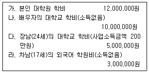 다음은 근로소득자인 김한공 씨가 2021년 중 지출한 교육비내역이다. 공제 받을 수 있는 교육비 지출액은 얼마인가?