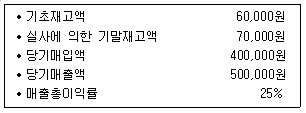 다음은 (주)한공의 재고자산 관련 자료이다. 재고실사 결과 재고자산 일부가 도난당한 것으로 확인되었다. 도난으로 인한 재고자산 손실 금액은 얼마인가? (그 외 재고자산 손실은 없다고 가정한다.)