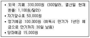 다음은 (주)한공의 결산조정 전 자료이다. 재무제표에 현금및현금성자산으로 보고 해야 할 금액은 얼마인가?